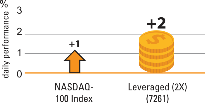 Grasp your opportunity in a bull market. Leveraged Products seek to achieve a leveraged daily return (2x) of the benchmark's daily performance, before fees and expenses